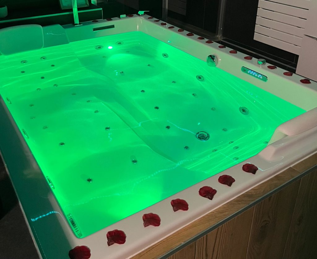 Pétales de rose et lumière tamisées préparée pour votre arrivée
